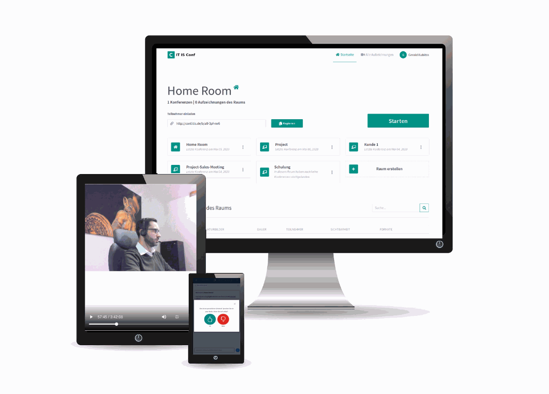 With ITISeasy.team you can create different permanent meeting rooms for specific webconferences, groups or customers, suited for recurring use. In addition, the following settings are available for every created meeting room: